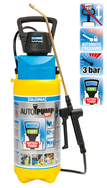 Ξεκούραστος ψεκασμός. Ο Gloria AutoPump Set επιτρέπει τον συνεχή ψεκασμό χωρίς να χρειάζεται το παραδοσιακό "τρομπάρισμα" της αντλίας. Η εσωτερική ηλεκτρική αντλία του AutoPump αυτόματα δημιουργεί την πίεση που χρειάζεται για την λειτουργία του ψεκαστήρα και συνεχίζει να την συμπληρώνει καθ' όλη την διάρκεια του ψεκασμού.