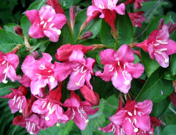 Φυλλοβόλος θάμνος. Πλούσια ανθοφορία σε όλο το μήκος των κλαδιών τον Μάιο- Ιούνιο. (Weigela)