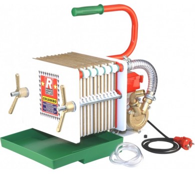 Αντλία ορειχάλκινη colombo για φιλτράρισμα κρασιού & οινοπνευματωδών με 12 πλάκες και απόδοση 500 λίτρα την ώρα, συμπεριλαμβάνονται 12 φίλτρα απολάσπωσης και 12 φίλτρα λαμπικαρίσματος.